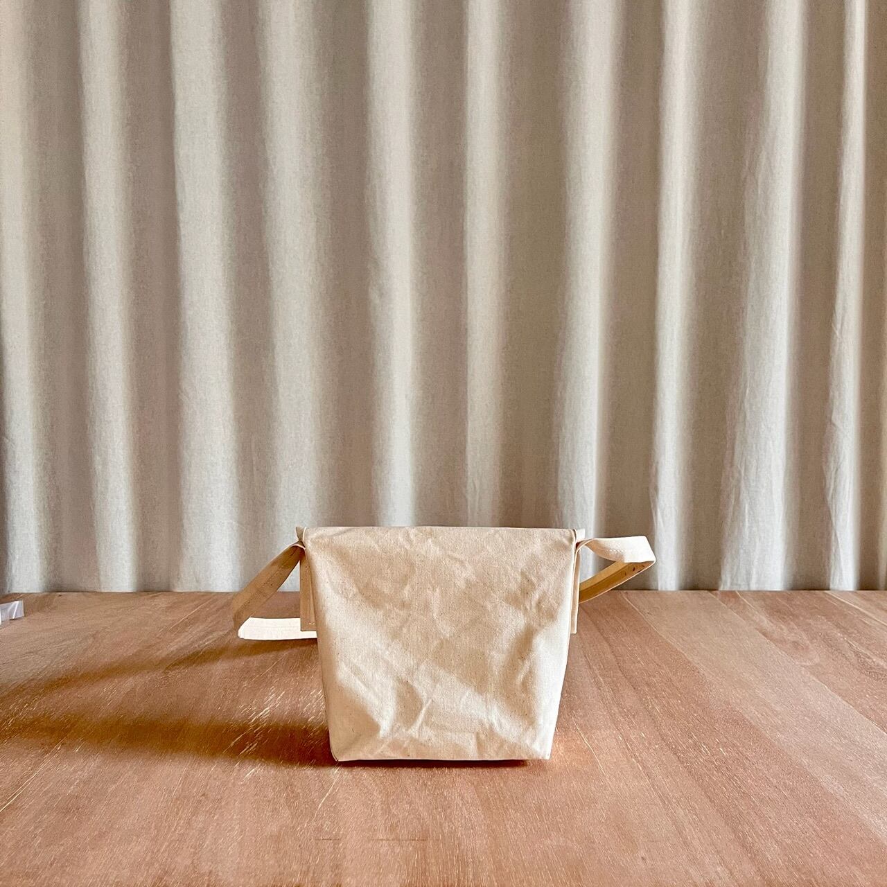 布とミシン糸以外、端処理のテープなども使用してしない、材料、作り方含め最小限のカバンです。