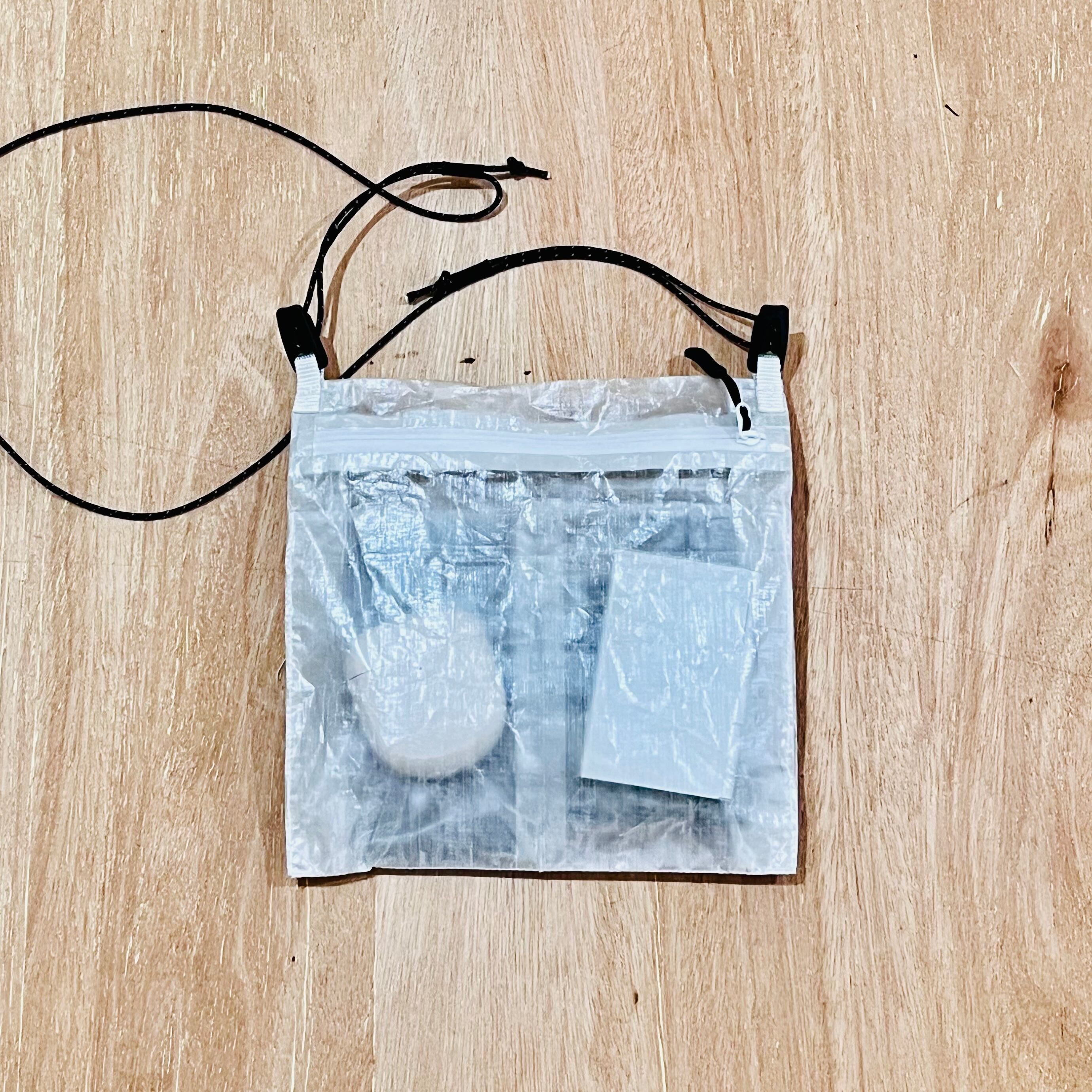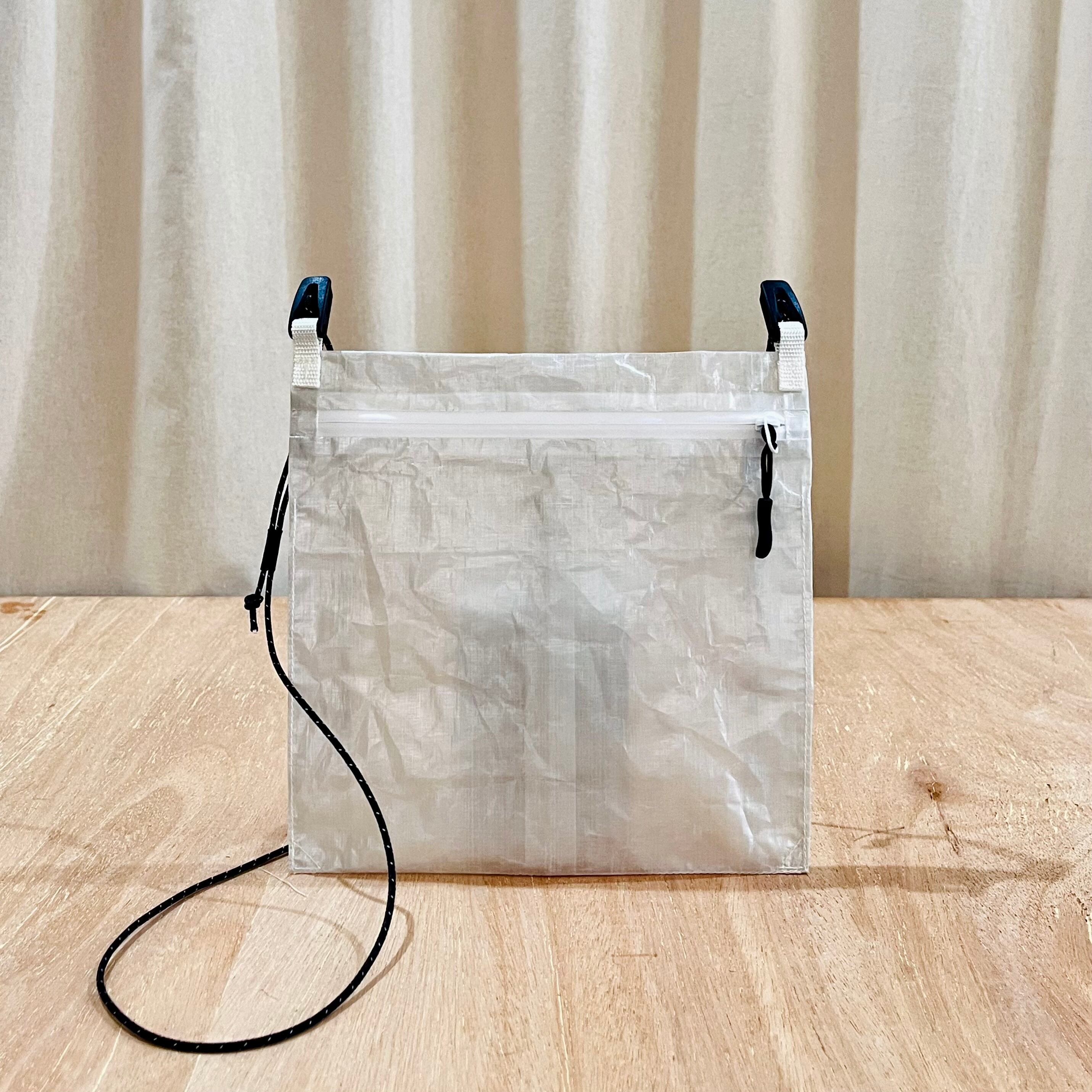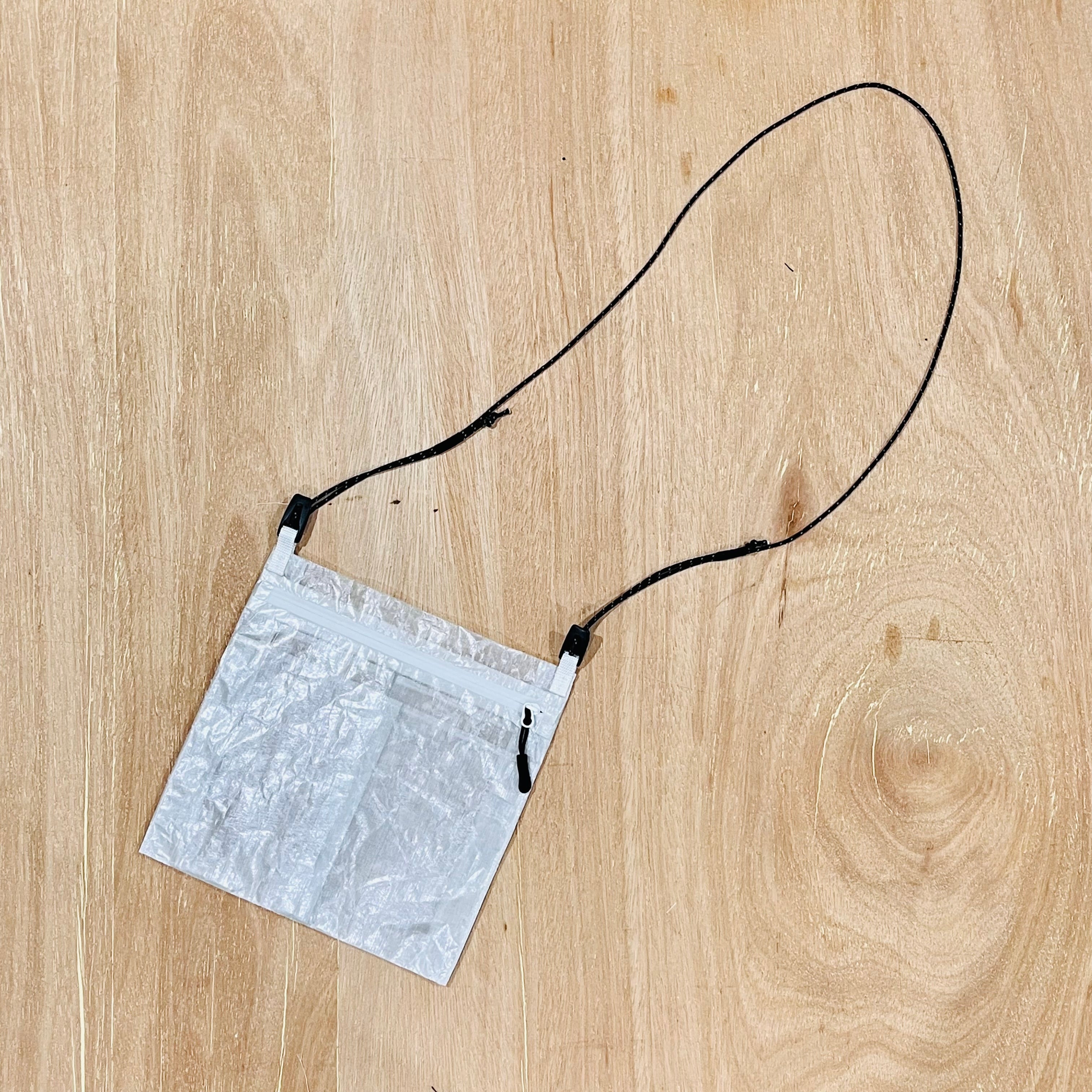 透け感と質感が特徴的な素材を使用した、ミニマルなサコッシュ。