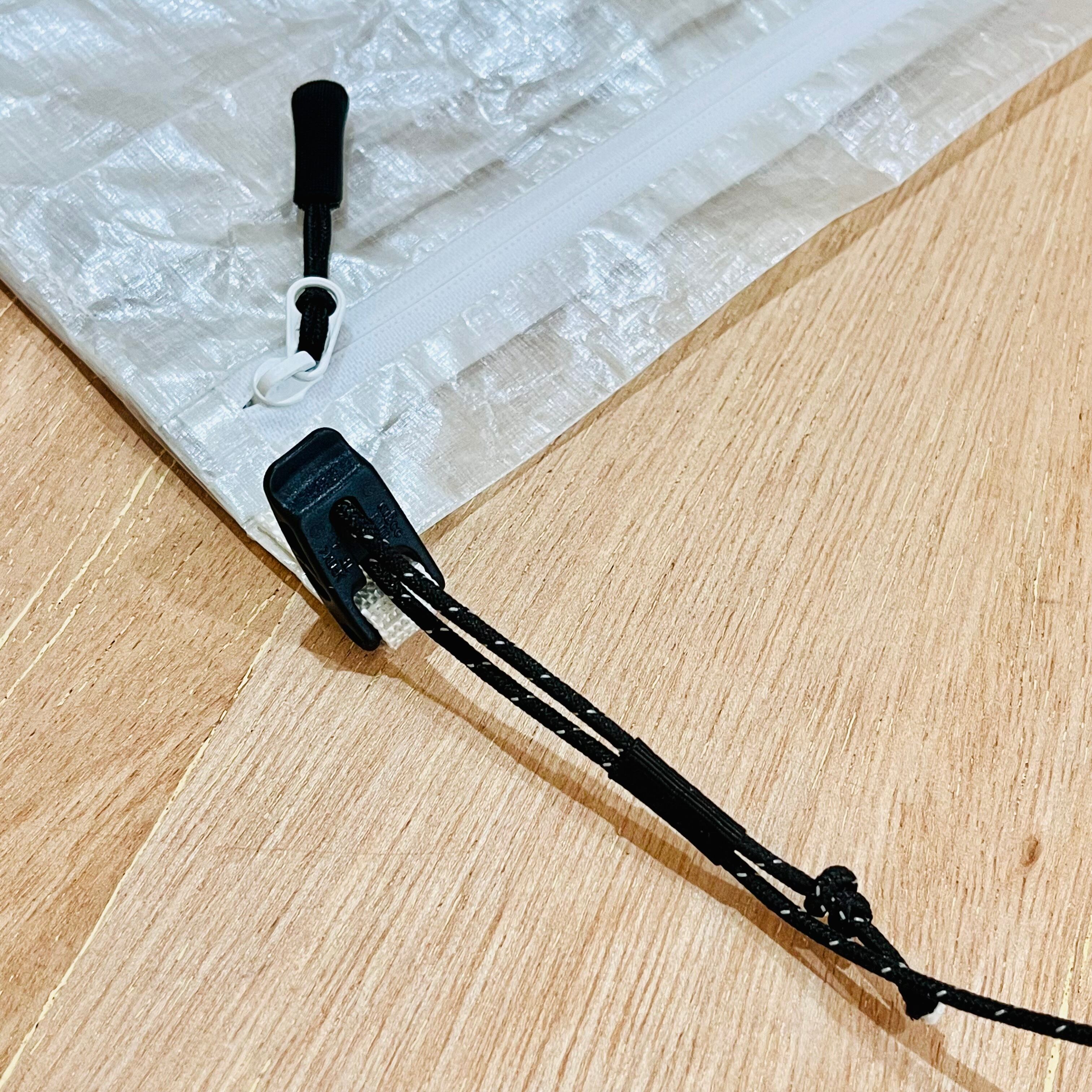 止水ファスナー、操作のしやすいアジャスター、ロープのバタつきを抑えるループなど、パーツ類もこだわっています。